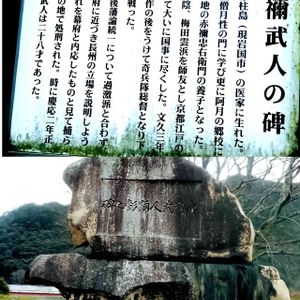 散策中、橋を渡り河川敷の公園に来たら、武人の碑がありました