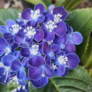 アジサイ ネイビーブルー の装飾花の真ん中のお花、キレイです✩.*˚✨✩.*˚✨ 一番手前、真ん中のお花の中心を見てください ꕤ︎︎·͜· ︎︎