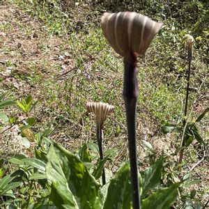 右「ウスキキヌガサタケ」 すぐ形が崩れるそうです。 網をかぶせたような綺麗な形も見てみたい。 左「ノギラン」 少し遅かったようです。 7月20日廿日市市の 自然観察の森で