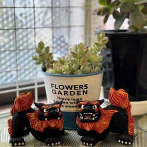 おはようございます(⁎ᴗ͈ˬᴗ͈⁎) 今日はシーサーの日♪ 我が家のシーサー達は水難から守ってくれる方角を向きながらお部屋暮らしです 仕立て直しでお部屋に入れたペンデンスさんと一緒に📷 🏷️シーサーの日🏷️シーサー祭 参加させてください✨ 今日も適度に(๑•̀ •́)و✧