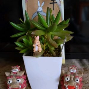 こんばんは🙋 今日はシーサーの日~🐱✨🐱 10数年前に沖縄でお迎えしたシーサーと共に✨ さきゅまるさんの箱庭セットが届いたので早速寄せ植えしました😁✨ 2作目は湖です🐚 一緒に来た透明のくろすけは第一弾の箱庭に仲間入り🎵 1作目も生き生きと育ってます😆✨