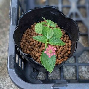 ランタナの挿し木 無事に根付いて、花も咲かせそうです😊 ても未だにただの赤玉土 そろそろ移し替えてあげないと💦