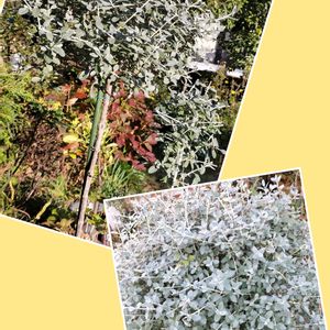 🌿ツリージャーマンダー🌿 今、花は無いけどその樹形2種育ててます😀 上は1本立ちにしてある姿。 フォロワーさんがしていたのでやってみたら なんだか素敵😍 下はこんもり仕立て。 放ったらかしの姿だけど まーるくなるように切ってます🤩 春に紫の花が咲くけど あまり目立たず、 むしろ普段のシルバーリーフが庭の中で目立ってるので 良いアクセントになってます🙆♀️