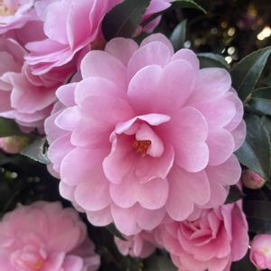 公園の山茶花 透明感あるピンクが可愛かった🩷