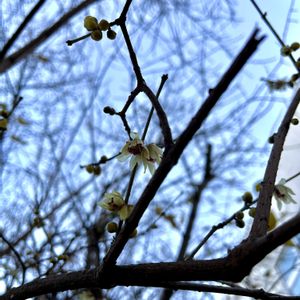 今日のお花🏷️ロウバイ 成人の日🎌朝出勤の夫に合わせて朝散歩🚶➡️🚶♀️➡️駅までの道のり途中で見送って、新年のご近所パトロール🚲💨梅の緑道に1本だけあるロウバイが咲き始めていました(*^^*) 株立ちの樹形はおよそ梅らしくないと思ってはいましたが、ウメとは別物なんですね😳 場所:グリーンパーク緑地(関前)