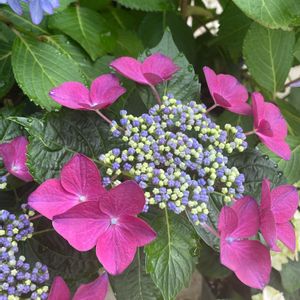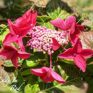 アジサイNo.29 レディインレッド 学名 Hydrangea macrophylla (Thunb. ex J. Murr.) Ser. forma normalis (E. H. Wils.) Hara cv. "Lady In Red" ガク咲き 一重 基本はピンク〜赤い花だが、土質で変化! 中性~酸性だと紫色になる。 もともと発色が良く、紫も濃くでる。 両性花の色も、青っぽい色あいになる。 特に発色が良いのは赤なので、アルカリ性がお勧め! 日向を好む。 性質が丈夫で育てやすい! 開花時期 6月(下旬) 〜 7月(中旬)
