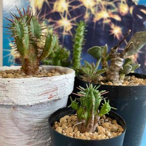 朝の植物健康観察 ①ちびのポコポコサボ。 品種不明🤔 赤や黄色のおできみたいポコ。 痛くないんかえꕀ⋆𐤔𐤔 ②③金鯱モンスト 成長点かな、黄色や赤のポコポコ。 お花じゃないけど、 ポコ色楽しかわゆ。 ④ユーフォルビアSP ミルキーカラーの紅葉してる。 こんなんもいいなぁ🥰
