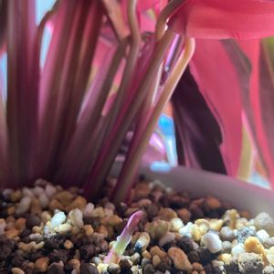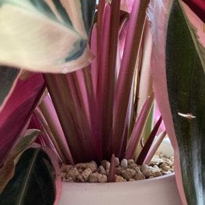 トリオスターさんです。 新たな新芽ちゃんが出てきていました🌱 端っこからこんにちは♪ このpicをよく見ていたら、右側奥の新芽ちゃんの脇にツノがある肌色っぽい虫がいると思って!👀 焦って玄関でみてみたら、カサカサしているもので、異常ありませんでした💦 良かった(;´Д`A