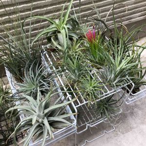 育てているチランジア達の一部です✨ いつもは窓辺ですが今日は日光浴と風通し兼ねて外に出しました! 何よりもやっぱり風が大事だと感じます😊