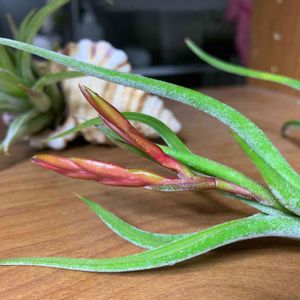 お、なんか咲きそうな感じしてきた🌸 チランジアとしか書いてなかったけど、君の名は?花の名は? うちにいるチランジア、ダイソー産以外はほぼ名なし😅 2.3年前なんて、エアプランツとか観葉植物としか書いてなかったもんね😁