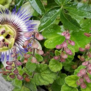 立浪草の花が終わり 実がそこかしこに見られます。 似たような蕾があるなと 思っていたら… 今朝咲いていた時計草が 友情出演してくれました。