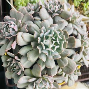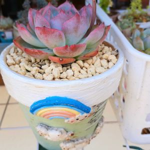 おはようございます☀ 今日の気温(17・29) ベランダ🌡 20℃ 遮光50% 37℃ 🏷𓈒𓏸︎︎︎︎毎月5日は群生の日 🏷𓈒𓏸︎︎︎︎5日はごっつご機嫌 昨日は雲が多く 思った程暑くならなくて良かった(*^^*) 夜の雨はわずか1時間足らずの間にゲリラ豪雨のように降りましたが💦💦 今日は気温はかなり上がるらしいけど 風も程良く湿度も低くてε-(๑´ ꒫ `๑)ホッ 1: 今朝1番輝いてた子 キャラリアンちゃんꯁꯧ kazukoさんお🐑ちゃん鉢 雨の後の🌈 (,,>᎑<,,)カワイイ*•.❥* 2:ホワイトゴーストちゃんꯁꯧ 何度も消えそうになっては☆復٩(ˊᗜˋ*)و活☆ 出来れば大きくなって欲しい子です😊 3 4: fukumomoちゃん みんさん作のパウンドケーキ缶と雨よけリメ鉢の箱庭ꯁꯧ 日当たりいい所へ移動しました🎶 5:おまけ その後のキャベツ🥬 どんどん大きくなってる〜👏👏👏 そして もう1つ増やしちゃいました(´>∀<`)ゝ 今はキャベツ安くて食べ放題なので芯を捨てるのが忍びないですꉂ🤭ププ