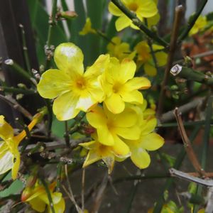🌼オウバイ(黄梅) モクセイ科 ソケイ属 半つる性落葉低木 ソケイなどとは違って花の香りはほとんどしないそうです