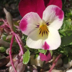 こんにちは☀️ 友人宅🧐 ビオラって何故か オジさん、オバさんの 顔に見える😚 ピンクだから オバさんかな😘