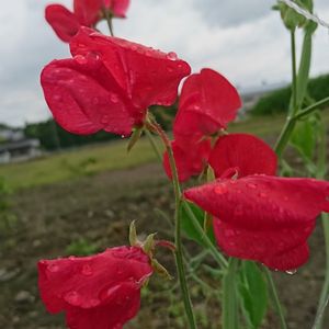 赤いスイートピーが咲き始めました😃🎵 我が家の赤は、他の色より遅れて咲き始めます✨