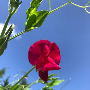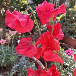 ボラガーデンに赤いスイートピーが咲いたので鼻歌が止まらない~(*ˊ˘ˋ*)♪ お花も可愛いけれど、いい香りと自由にぐんぐん伸びる強さが好きだなぁ♡