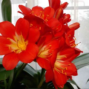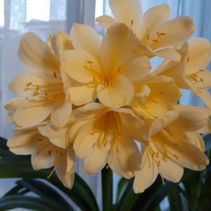 🌼君子蘭 艶やかに 咲き誇ってま~す😍 父がいいように増やして 今では 大きい鉢植えが6鉢に。。。😓 さすがに90歳の父には 移動は不可能😖 で お世話係は私に 今年は2鉢お嫁さんに出すことにしましたぁ。。。😉