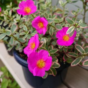一枚目のポーチュラカ華ミステリア ピンクの葉と斑入りの葉がとっても可愛い〜💕💕💕 花は一日花…やっと📷撮れました。 ショッキングピンクにキュンキュン💖💖💖