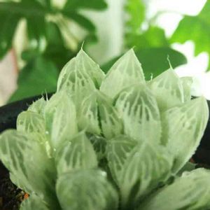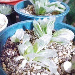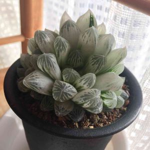 ハオルチアを育て始めてからずーっと憧れてた白い君…ハオルチア アイススプライトさん。 ついにお迎えしてしまいました。 まるでガラス細工みたい…美しい…💕 しかも子株がたくさん付いてる。株分けすべきかしら…。