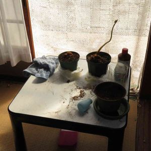 今、2つの新芽が枯れようとしています。上のは4月29日に迎えたすでに新芽が生えていたほうの子。首のあたりから細くなっているので絶体絶命です。水やりが足らなかったためかと思われます。こうなっては復活のしようがありません。新たな新芽が生えるのを期待しましょう。下はいつもの子ですが、垂直に矯正しているところですが、昨晩の水やりを忘れて寝てしまったせいか、水分が穂先まで行き届いてないように感じます。慌ててメネデール高濃度希釈で与えました。何とか復活することを祈ります。俯瞰してみると元気そのものに見えるうちの子たちですが、細かいところをみると弱弱しいところもあります。今から暑い季節に入りますから、どの植物も水切れだけはさせないよう気を付けましょう。