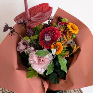 ちょっとおめでたい事があって頂いたフラワーアレンジ✨ 猛暑♥️🌞🧡を思わせる様な色合いです😅 🏷日曜ビタミンからー♪に参加させて頂きます🥰