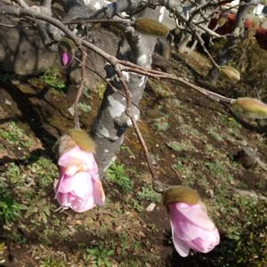 実家の母から貰った花達 コブシがようやく膨らみ始めました🎶 今日暖かいから開くかなぁ〜