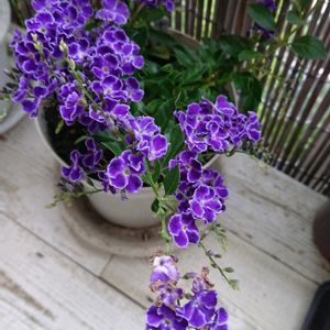 先日仲間入りした新しい顔ぶれ😊 涼しげな色たちが並びました😊 紫が美しいデュランタ ずっと欲しかったルリマツリはライラックブルー 三色リンドウと真っ白なペンタス、ブルーの小花がかわいい😊 カモミールは昨年度12月に一ポット植えてたものが花盛りを迎えて、、、 玄関に一輪、、、 見てるだけで嬉しくなる夏の新しい我が家の風景