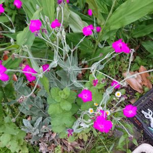 畑のよこのスペースにはひとりむすめが、、、 種から育ち、植え付けを待つマリーゴールド。 出先で見かけた野草とバラ