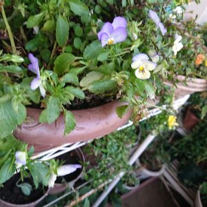 フリルのビオラ3色 今年は3鉢 植えました🪴 年齢と体力にあわせ 植える数がだんだん減ってきた😅