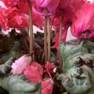 フリルが可愛いシクラメン🩷 部屋が明るくなりますね💞 下から上がってくる蕾も愛おしく 覗きこんで🤳パチリ🤗 1000pic 記念の1枚になりました🎶 いつも見ていただきありがとうございます🌈🤗 今後ともよろしくお願いします🙇♀️
