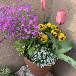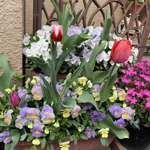 雨が降る前に🤳 ビオラの中から チューリップ🌷咲き出しました💕 久しぶりの投稿です。 また宜しくお願いします🙇♀️
