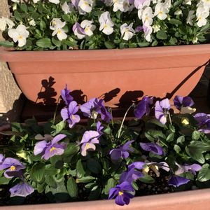 今朝のビオラ🎶 朝日を浴びて咲いてます🤗