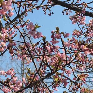 職場前の河津桜がやっと咲き始めました🌸 例年2月末くらいには咲くのに今年は遅いです🌸🌸