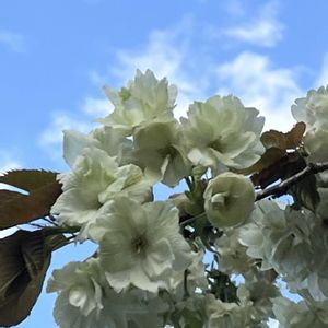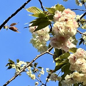 緑の花がだんだんピンク色に変わります。 普通の桜より後に咲く桜です。 去年より1週間ほど早い開花😍