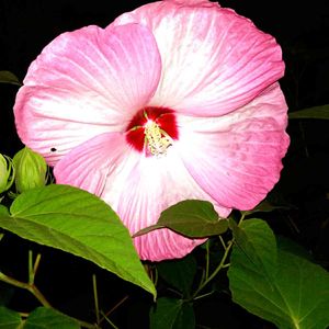 仕事帰りに、通り道の畑の生け垣に咲いていた、 芙蓉の花です。 親指と中指で測ってみたら、未だ足りませんでした。