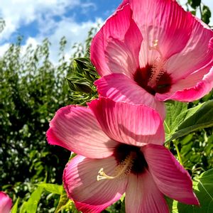 『フヨウ』 🏷️今日のお花 1.2.3枚目 🏷️アメリカフヨウ 4.5枚目 🏷️酔芙蓉 1. 一日花 フヨウの花は朝に咲いて夕方にはしぼむ「一日花」。でも次々と新しい花が咲くので、長い期間楽しめます。 👀 「一日で散るのに、夏から秋まで咲き続ける」って不思議ですよね。 2. 色が変わる花 サルスベリやアサガオと同じく、フヨウの中には咲いた直後は白、時間が経つとピンクへと色が変わる品種(スイフヨウ=酔芙蓉)があります。 🥴まるで「お酒を飲んで赤くなった人の顔」みたいに見えることからこの名前がつきました。 3. 古代から“美人”の代名詞 「芙蓉の顔」と言えば、美しい女性の顔をたとえる言葉。中国・日本の古典にも多く登場します。 🥰美人を花にたとえる文化は、芙蓉が代表格だったのです。 4. アオイ科の仲間 フヨウはハイビスカスやオクラと同じアオイ科。意外に“食卓”ともつながっている植物なんです。 🌿実際にフヨウの若葉は天ぷらにしたり、おひたしにできる地域もあります。 《酔芙蓉》 その名の通り“酔っぱらった顔のように赤くなっていく”様子から名づけられています  。 朝は真っ白な花なのに、昼間~夕方にかけて徐々にピンクに染まり、濃く紅色に変化していく…まさに自然の「タイムラプス🎥」です 🤩 🤩朝には白く、昼にはピンク、夕暮れには深紅に🥰 一日にして色を移ろわせる酔芙蓉。 🤩25℃以上の気温で色が変わる仕組み🧐 科学的にも美しい自然の変化。 🤩牧野富太郎博士による命名、心変わりなどの花言葉。 🤔知るほど奥が深い。 🤩一日花なのに夏から秋にかけて楽しめる。 ひとつひとつは短命でも、たくさん楽しめるのがロマンチック(*´˘`*)♡ 本日、40度越え予報❗️ 実測値は➕5° 死なないように気を付けなきゃ😝 皆さまもご注意下さいマセ(⁎ᴗˬᴗ⁎)❤️🩹