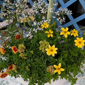 今年の5月初め、モニターをさせて頂いた🍋🟩ペチュニアライム🍋🟩を入れて作った寄せ植え💐 5ヶ月経った今の様子です♪ ペチュニアライム🍋🟩のお花はありませんが、 3⃣HCからお迎えしたペチュニア“テヌート”は、健在です🎶 4⃣ひと休みしていた“ミリオンベル プチホイップ”が復活してきました🧡