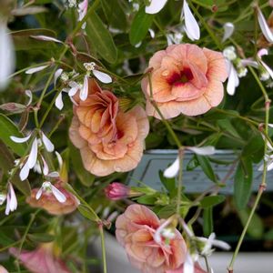 2025.5.14☀️(9℃~28℃) サントリー ミリオンベル プチホイップストロベリーとアンティークピーチ🍑🍓 咲いてきました🌸