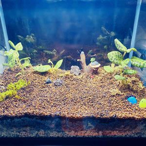 💚初パルダリウム💚 作成後1ヶ月経過 思ったのとなんか違う………🤔 レイアウトが気になりだして止まらない😇 下葉が黄色になってますが、マコデスペトラは根っこ伸ばしてくれてます これをたたき台に、少しずつ改良していけたら……