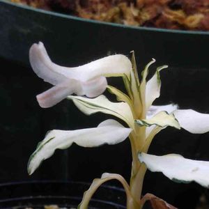 何度か投稿した斑入りのミヤマウズラとして購入した子が開花 ✨ 花は紅シュスランでした(^_^メ) 白すぎてカメラがピントを合わせづらい💧