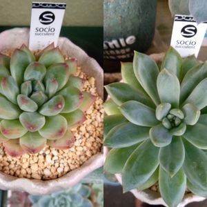 コレって同じ多肉なのかしら? 右側の札なしの方は 立木風になってて株元は1つの枝になってました😳 どちらも成長ゆっくりです😅