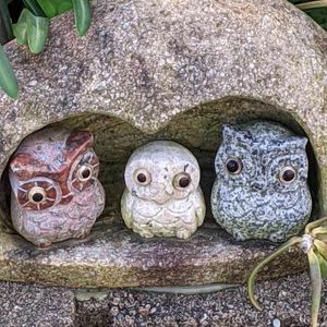 石の祠に鎮座するフクロウさん3羽 🏷フクロウ祭りに参加します。