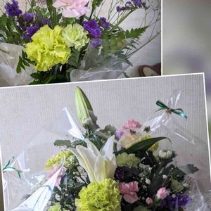 ⇩大切な人の記念日に友人から贈られたお花💐 ⇧約1ヶ月後まとめ直したお花💐 真冬は長持ちしますね 今日のお花 スターチス 最初からドライフラワーみたいです😉