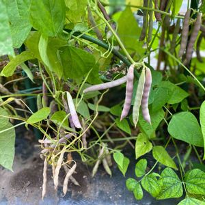 野菜部👩🌾 畑の様子です。 モロッコインゲンのトンネルの一部に 蔓あり紫インゲンを植えたつもりでした。 なんか様子が違います。 どうやら、間違えて以前取って置いた大虎豆かと思ったら、中を開けてみると小粒の真っ黒な豆でした。 大虎豆では無さそうです。 なんの豆だろー😲💦💦