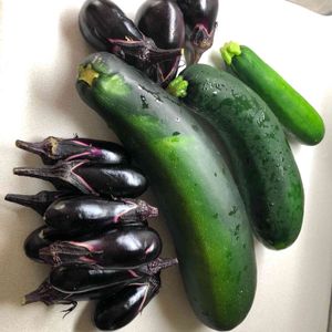 採れたシリーズ 仕事忙し過ぎて一週間放置プレイ。 とてつもないサイズのキュウリと 水茄子をGET