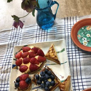 (美味しい部) 🎶 ポワソンダブリル ♫ 3日遅れの「ポワソンダブリル」です。サクサクパイにいちご🍓がタップリ💓お目々ఠఠがあります。わかりますぅ〰⤴ シェフ曰く、センスがなくてスミマセヌだって〰😆 春の訪れを告げるフランスの伝統菓子でした〰〰〰🧑🏼🍳😄 🌸クリスマスローズ