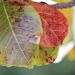 N2 鮮やかな 赤い綺麗な葉っぱ! 教えていただきました。 モモタマナだそうです。 ありがとうございます。