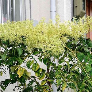 おはよう御座います😃 今日も残暑の厳しい一日に なりそうです🥵 蔦の絡まるチャペルで🎶 古😅 倉庫壁には一面グリーンの蔦 黄緑色ピンポン大のかんざし状の花が 彩りを添えています。 ウエディングでは 永遠の愛のシンボルとして 花飾りに使われます。 年月が経たないと咲かない花 アイビー(ヘデラ)の花(セイヨウキツタ) 花言葉 永遠の愛