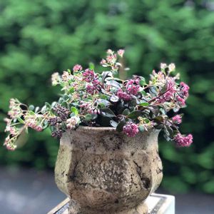 出かける前に…黒ポット2つ減らしました〜😂 よそで見かけて可愛かったので、ミセバヤ2種類をお気に入りの鉢(10年くらいは使ってる?)に寄せ植えしました。