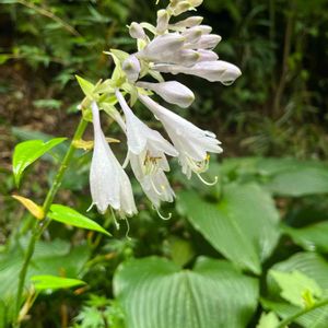 このホスタの品種名はなんだろ?よく考えたら、買って来た時から名札がない😓 おっきな白い花で匂いがあるからタマノカンザシでしょうか?匂いにつられてアリがすごい働いてます。笑😆 葉色は写真で見たとおりの色です。どなたかご存知ならコメお願いします!